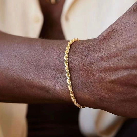 Retro Stainless Steel Twist Chain Men’s Bracelet – Gold & Silver