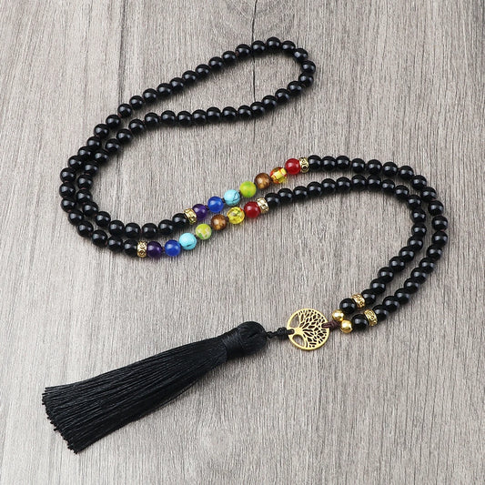 Black Onyx & Black Obsidian 7 Chakra Necklace