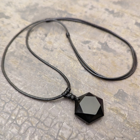 Black Obsidian Hexagram Necklace for Protection and Enlightenment