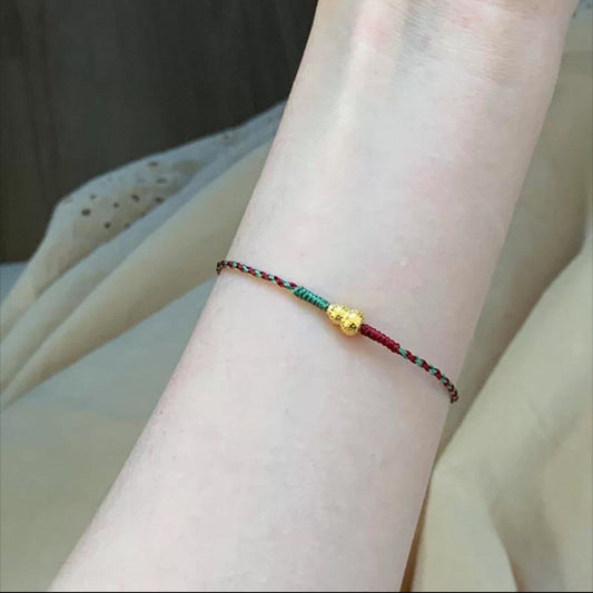 Mini Gourd Prosperity Bracelet — Handcrafted Adjustable Red & Green Braided Cord